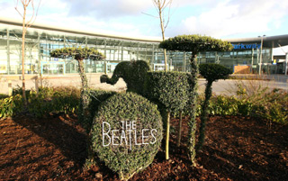 18か月かけて育成、形成したビートルズ・トピアリーが、2週間前にリバプール・サウス・パークウェイ駅で除幕された。しかし先週末の間に、リンゴのトピアリーだけ何者かによって頭部が切り取られてしまい、その頭部は見つかっていない。ジョン、ポール、ジョージのトピアリーは無傷だった。