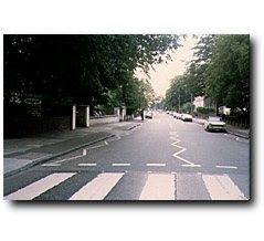 ![]() ●横断歩道 ビートルズのメンバーが最初のレコーディング以来、何度も渡ったであろう横断歩道。アルバム『アビイ・ロード』のジャケットのために4人が渡ったのは1969年8月8日。 アルバムが発売されてからは、いったいどれだけのファンが横断歩道を渡るためにここを訪れたことか。こんなに普通の横断歩道なのに、世界一神聖な横断歩道なのである。
