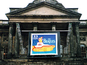 アメリカの記念切手シリーズ「セレブレイト・ザ・センチュリー」のなかのひとつに、『イエロー・サブマリン』の潜水艦をデザインしたものが9月17日に発売される。その正式公開のセレモニーが「イエロー・サブマリン・デイ」にあわせて8月30日に、米国郵便公社の幹部の出席のもとリバプールのキャッスル・ストリートで行なわれた。